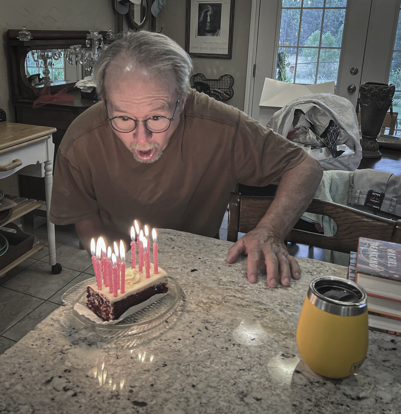 I marked another birthday a couple of days ago. To do so, I took off from working at the library, woke up early, accepted birthday greetings from my Beautiful Mystery Companion and hopped on the zero-turn mower before the sun was high in the sky to mow the front pasture, which consists of about 3 acres. Mowing while listening to NPR through noise-canceling earbuds — wearing a long-sleeved shirt and pants bucked into my Red Wing boots, topped by a wide-brimmed hat — seemed like a good way to reflect on how I have arrived at 68, what it means, and what might lie ahead. As a friend said, “Time marches on but without my consent.”