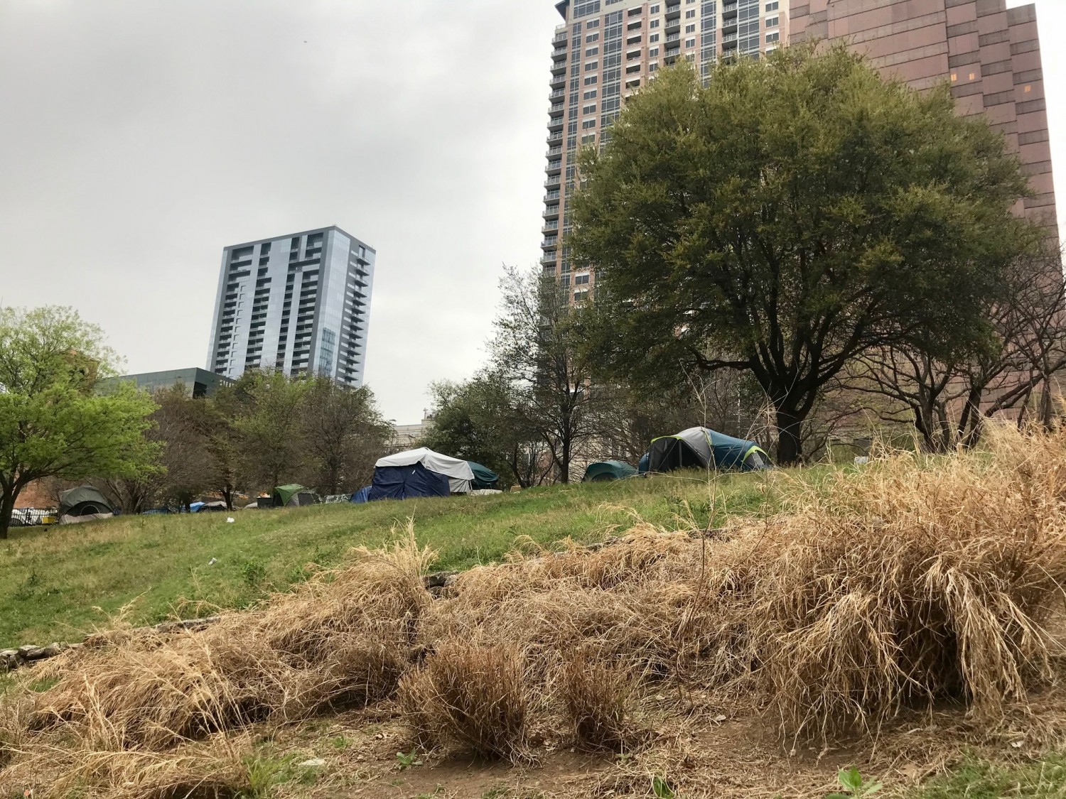 One change in the past year is the proliferation of tents set up along the grassy area between the trail and Cesar Chavez Street, housing homeless folks. Sadly, it reminded me of the Hoovervilles of the Great Depression — though the tents were nicer than the shanties folks built back then out of whatever material they could find. I’m sure the pandemic has exacerbated Austin’s homeless situation, but at least the tents are a step above people burrowed into a sleeping bag on the ground. I noticed several folks doing just that, hard by the lake’s shore.