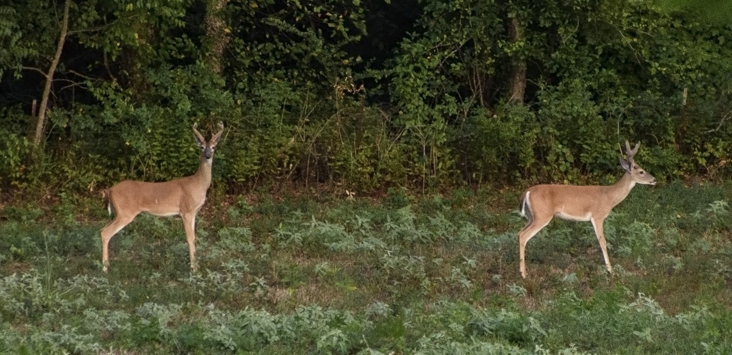 Two young bucks have been grazing amongst the goatweed. This prompted me to buy a bag of deer corn for the feeder to give them something decent to eat. The deer are perfectly safe on our farm. The only four-legged creature at risk are feral hogs.