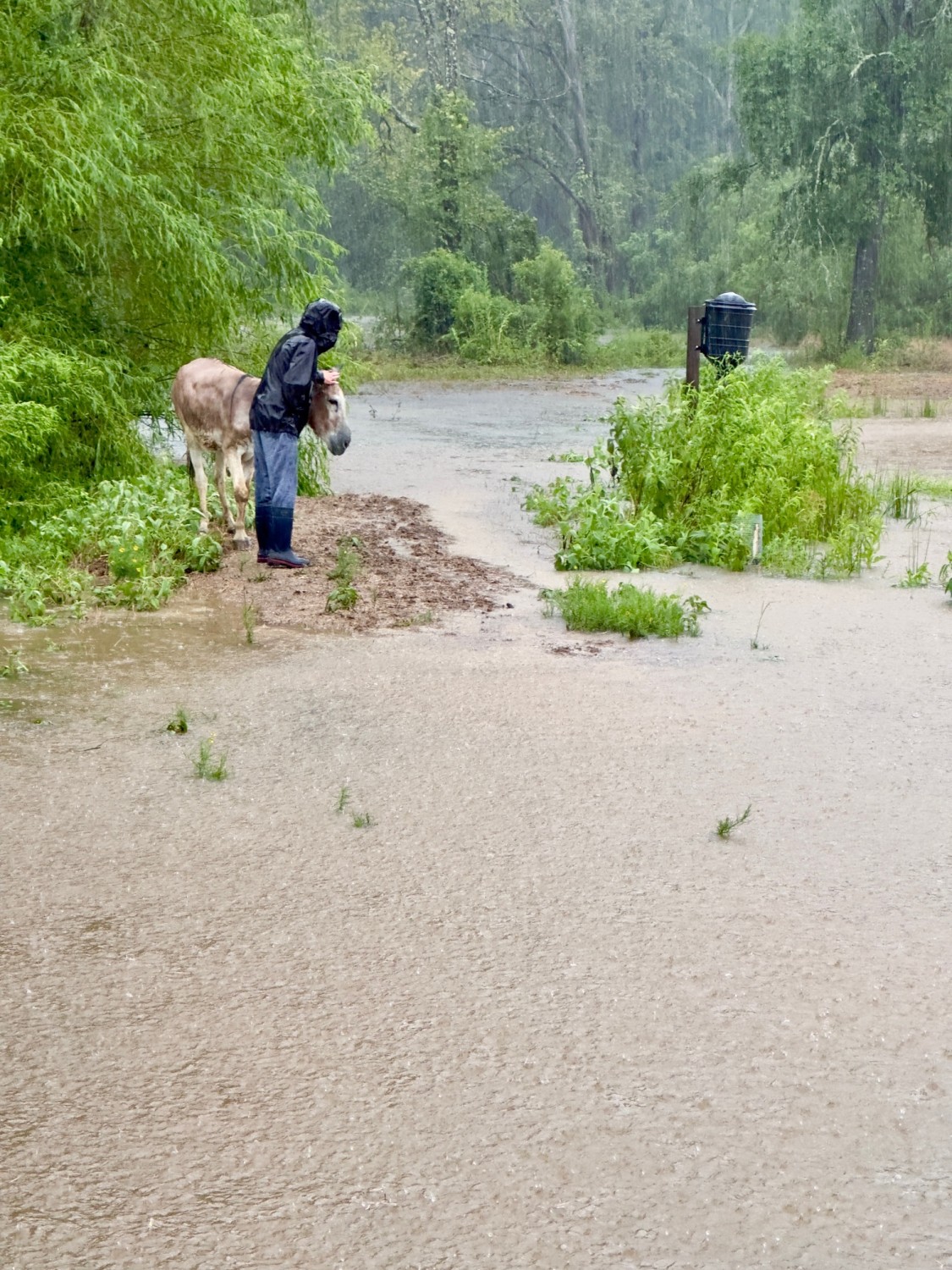 The remnants of Tropical Storm Beryl came through the Pine Curtain on July 8, after hours earlier leaving a half-million folks without power in the Houston area. We were far more fortunate than Bayou City residents, where more than 100,000 are still without power a week later. But the six-plus inches of rain that pummeled Three Geese Farm certainly had consequences, though nowhere near as dire. Our experience drove home the perils of hobby farming. It also reinforced my gratitude that we are not actually trying to make a living at this endeavor. So please read this in the spirit intended — not to complain or bemoan, but to possibly entertain.