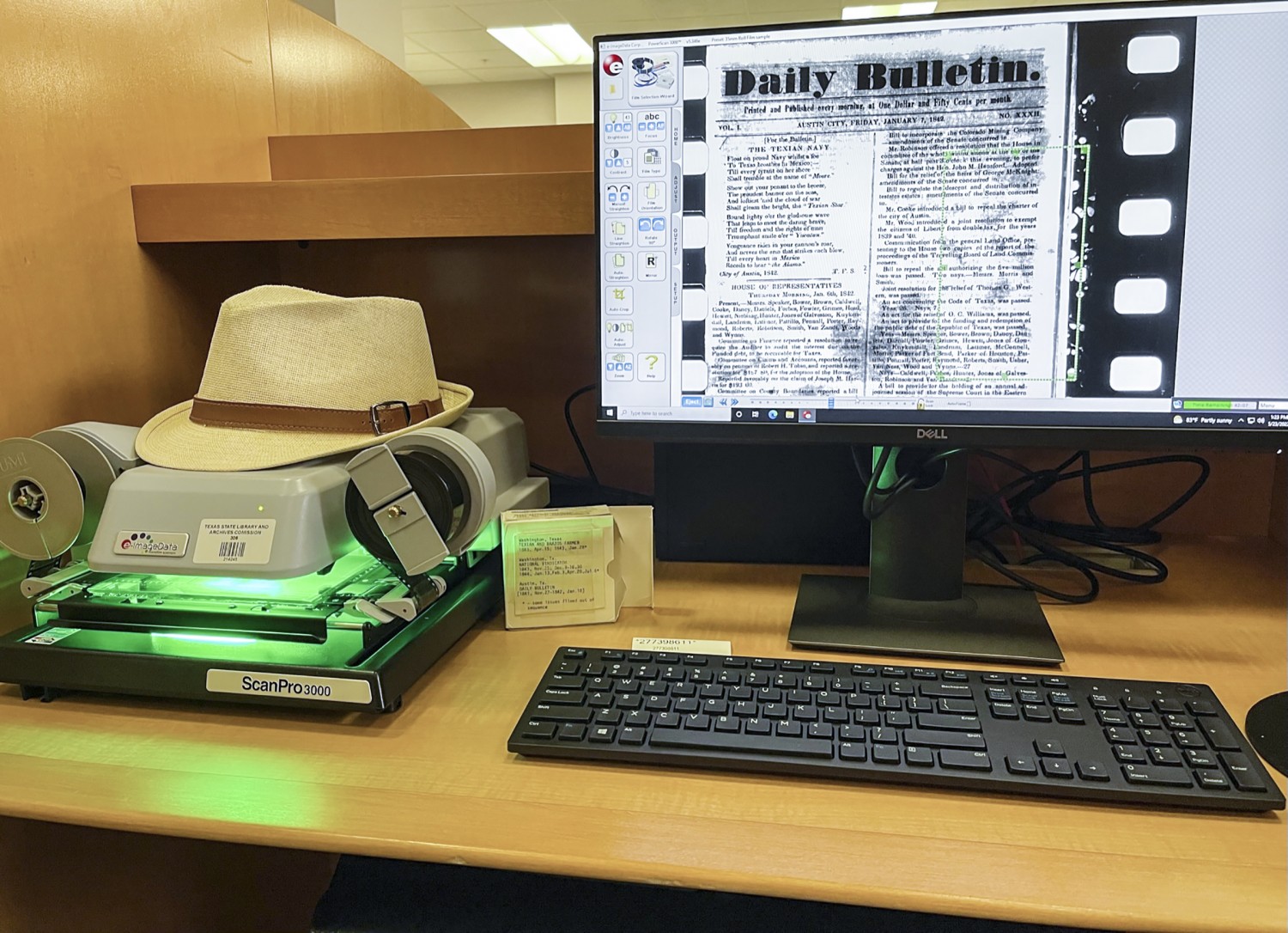 I began doing this type of research in 1986, both at the state library and the Briscoe Center of American History on the UT-Austin campus, working on my master’s thesis. Back then, as I looked at printed copies or microfilm, my only choices were transcribing straight from the page or microfilm screen, or paying 10 cents a sheet to print out articles of interest. I would get out the latest issue of the San Augustine Rambler, the weekly I published, get up early the next morning and drive 265 miles to Austin to spend as much time as I could doing research. The shot clock was running out on completing my thesis in the allotted time. I managed to get the thesis finished in time to get my master’s. Being back here at the state library brings it full circle in my mind.