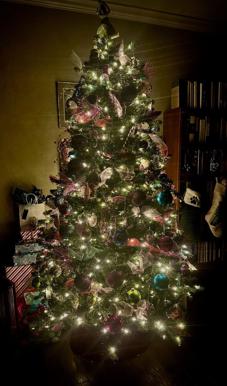Daughter Abbie, while home from graduate school at Thanksgiving, took charge of decorating the tree with her impeccable style. It’s an enchanting, cheerful tree. She has a true gift for decorating, whether it is a ballo