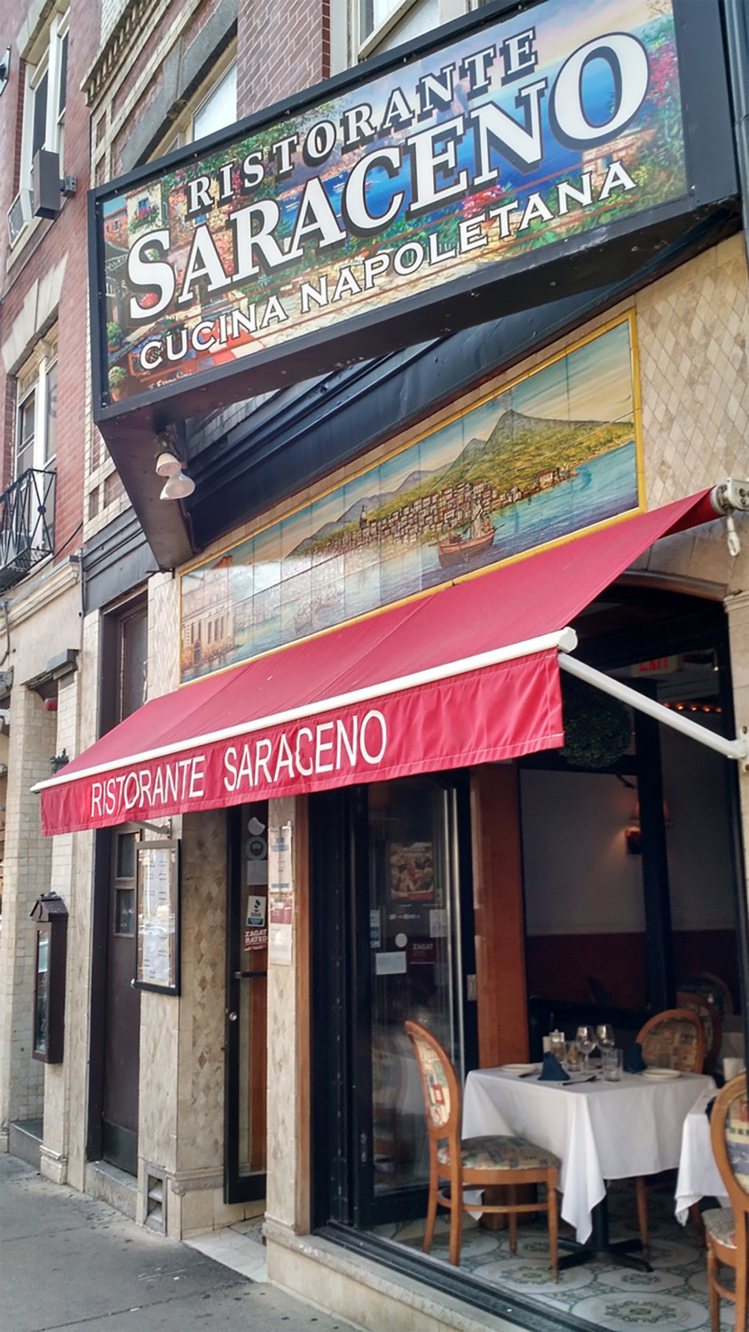 On the advice of the hotel’s concierge, we stopped for lunch at a venerable but reasonably priced establishment. I suspect we could have stopped most anywhere on Hanover Street and had a great meal. But Ristorante Saraceno was perfect — relatively uncrowded, elegant table settings, a few tables filled with Italian families, an attentive waiter, and windows open to let in the cool breeze and patter of the North End.