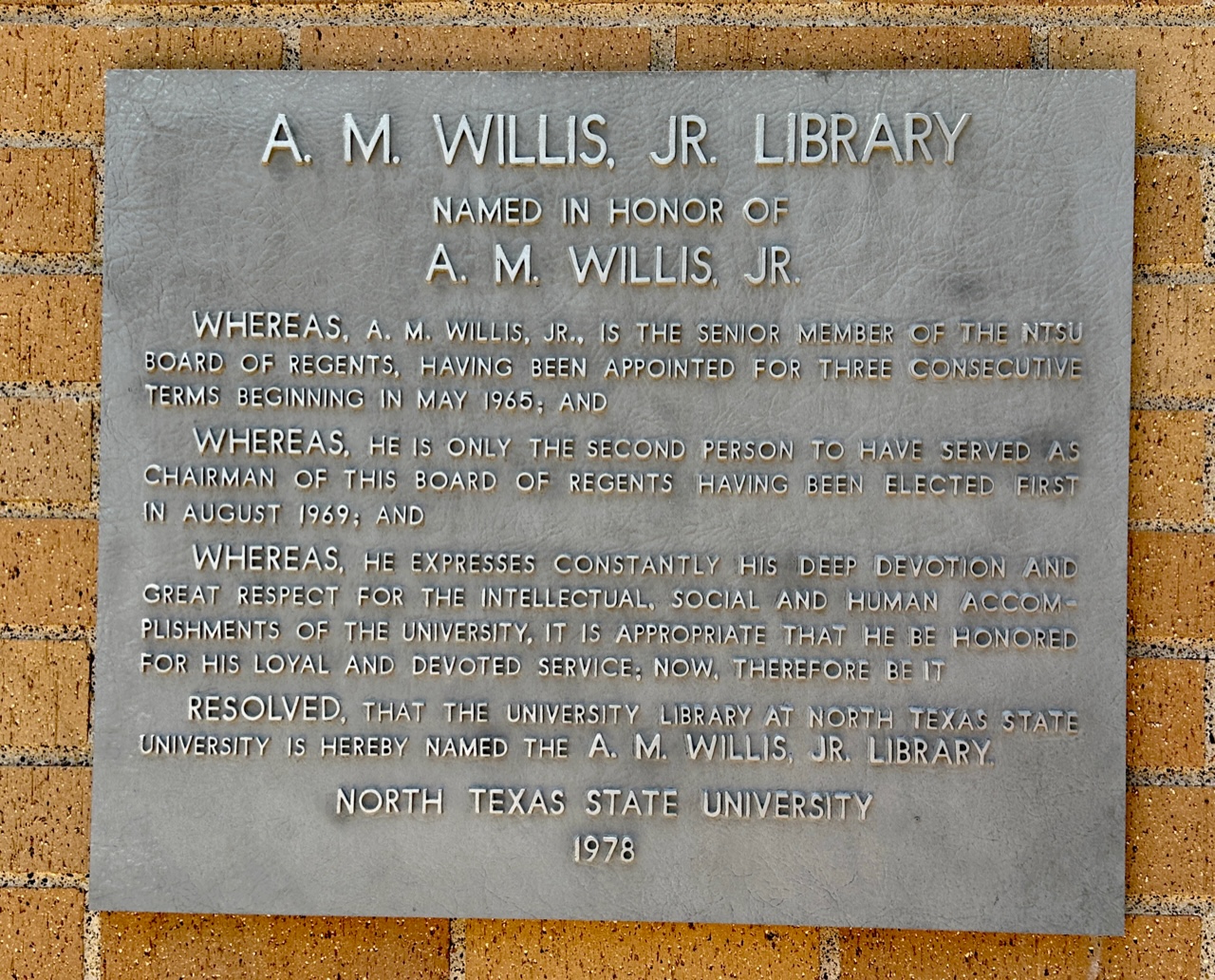 “Yeah, and I never gave them a damn dime,” he growled. Technically that might be true, though I doubt it. But Monk served an impressive 18 years on UNT’s board of regents, from 1965 to 1983, despite having no previous connection to that university. That is why the library was named for him, as a photo of the plaque on the building accompanying this piece explains. I have wanted to visit this library for years.