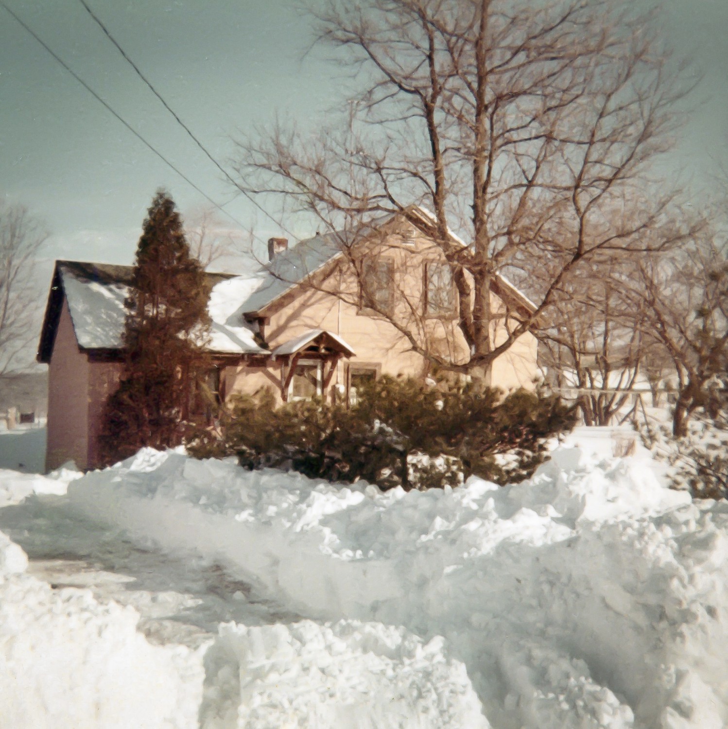 As you can see by the accompanying photo, we got a lot of snow. As a kid, we loved building forts in the snowdrifts, building slalom courses at my grandparents’ house. One day we decided it would be cool to jump out of the second-story barn window into the snow drift below. I leaped and landed on a board left over from the coop with a nail sticking out. It punctured my boot and into my foot. This led to a trip to the doctor for the tetanus shot and a long scolding from my mother. I think my dad thought it was pretty funny.