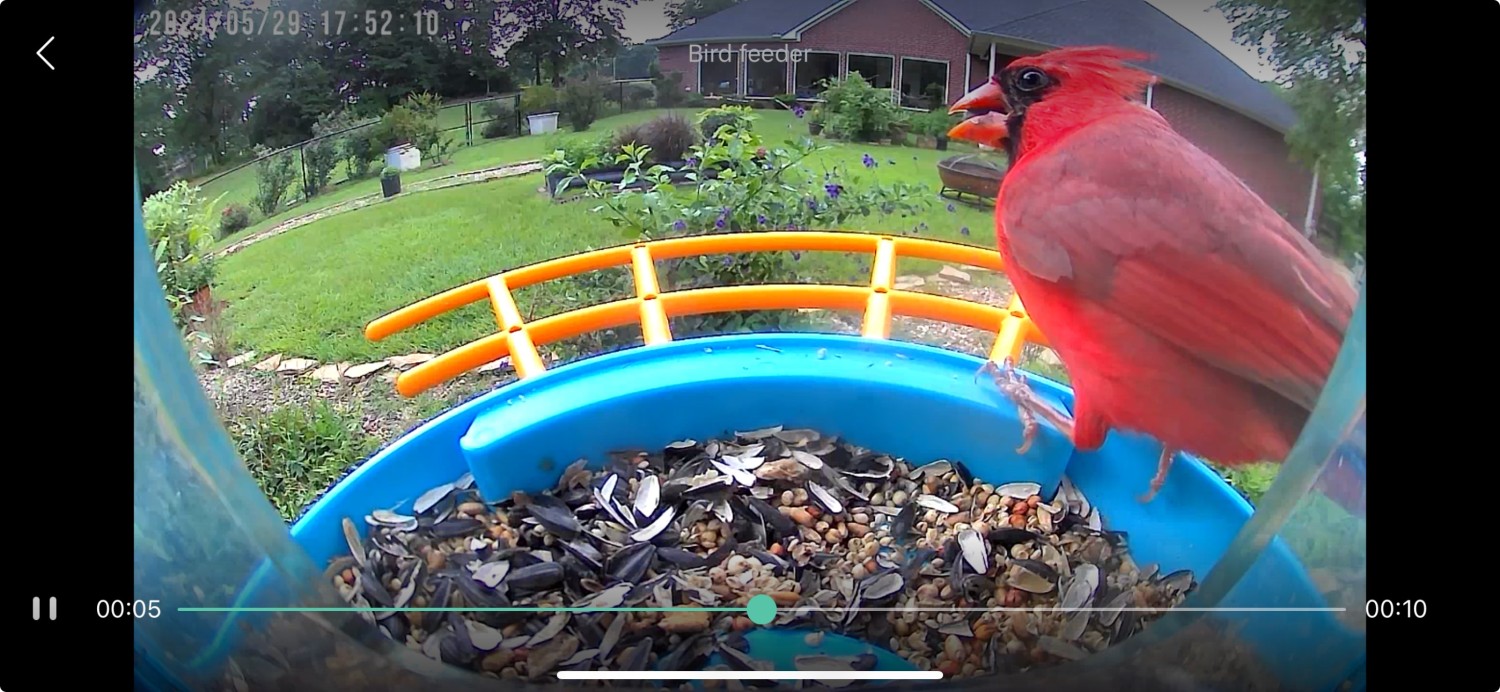 We are dipping our toes slowly into this peeping-Tom world of spying on our backyard friends. For now, we are only using the free app and not springing for the artificial intelligence add-on, which claims it can identify the birds right as they are captured by the camera. The example shown on the app site shows AI helpfully identifying a blue jay. Really? A blue jay? I need AI a bit more sophisticated than that. I also am curious how AI would react to that racoon up on the feeder. Hairy Bird! Hairy Bird!