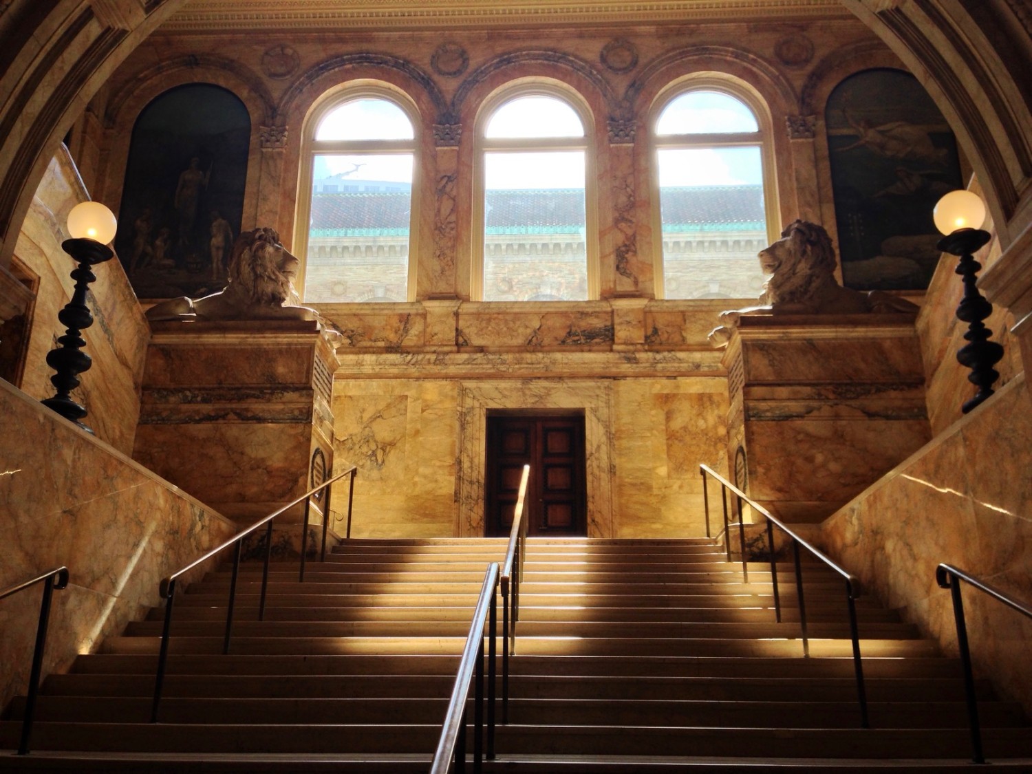 A pair of sculpted lions — commissioned to honor Union soldiers from the 20th Massachusetts Volunteer Infantry who served in the Civil War — guard the grand marble staircase. The entrance to the Boston Public Library is as grand as any I have witnessed. And the restrooms are easy to find. That becomes increasingly important as the years pile up.