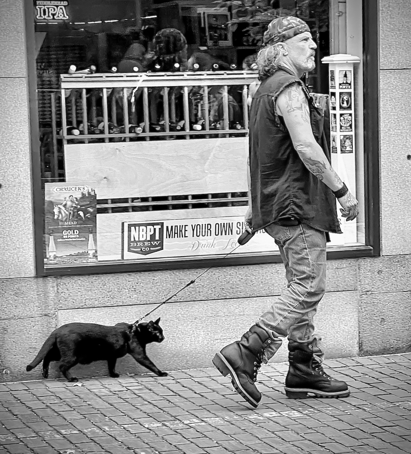 The weather was chamber-of-commerce perfect for our trip, abundant sunshine combined with temperate temperatures — great weather to walk a black cat on the brick-lined streets of downtown Salem.