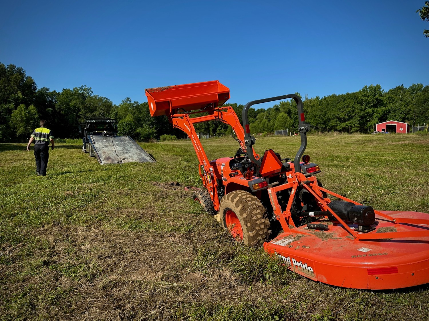 I bought a new tractor a couple of weeks ago, trading in Little Red for a shiny orange model that is sturdier and simpler to use. Like its predecessor, it is considered mid-sized, doesn’t have a cab, and is small enough to slip under the many trees here at Three Geese Farm in order to mow. The first time I used Orange Crush, as I have named her, I mowed about half the side pasture. I was pleased with the result and eager to return the following day to finish the job, on a Saturday morning.