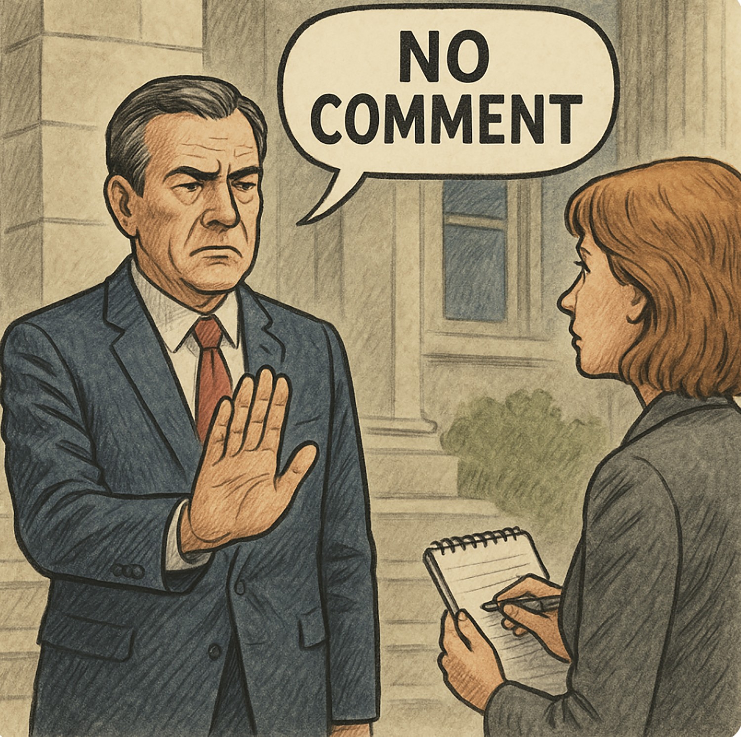 One of the infuriating non-responses I hear while listening to NPR or come across in the dozen or so media outlets I read daily is a version of this: “Sen. Doofus declined to comment.” From the Oval Office to a local constabulary, it appears the entire government apparatchik has decided the best response to inquiries from members of the media who are not brown-nosing toadies is to ignore them.