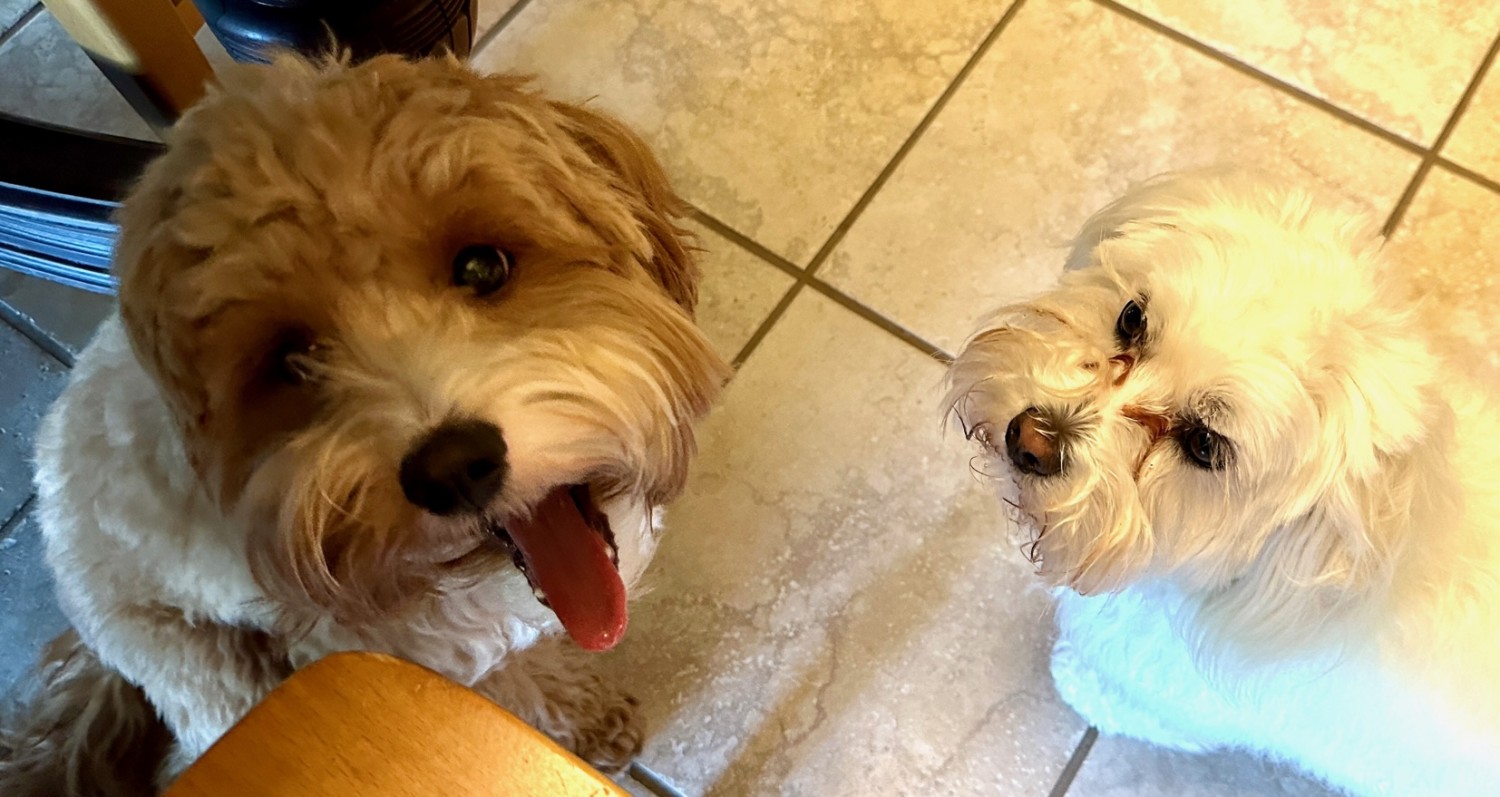 I have singlehandedly created a pair of Pavlov’s dogs. Instead of a metronome, Mollie the Maltese and the Great Gatsby come scurrying to be at my side whenever they hear the scraping of the breakfast nook chair. It means I am about to sit down to eat.
