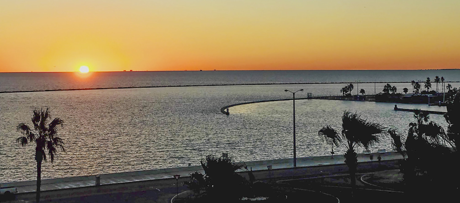 We arrived by late afternoon, with enough time to take a walk along Shoreline Drive. Oil platforms can be seen in the distance, while fishing boats made their way back to the dock. Autumn weather had not yet found its way to Corpus Christi, and an occasional breeze was welcomed as we walked down the pier in the 90-degree heat. A few dozen fishing boats were tied up, along with a few pleasure craft, but primarily this was a working dock.