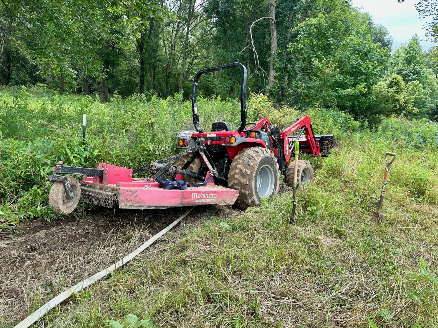 I was slowly mowing in Pancho’s Pasture, aka rice paddy, along the east fence line, trying to shear the dead ryegrass and prepare for planting 50 pounds of Bermudagrass. One moment I was moseying along dry ground, the next the tractor was stuck in mud halfway up its front tires. This has happened before. Little Red is a mid-size 38 hp machine with four-wheel drive. I have managed to rock it out of a number of tough spots in the past three years.
