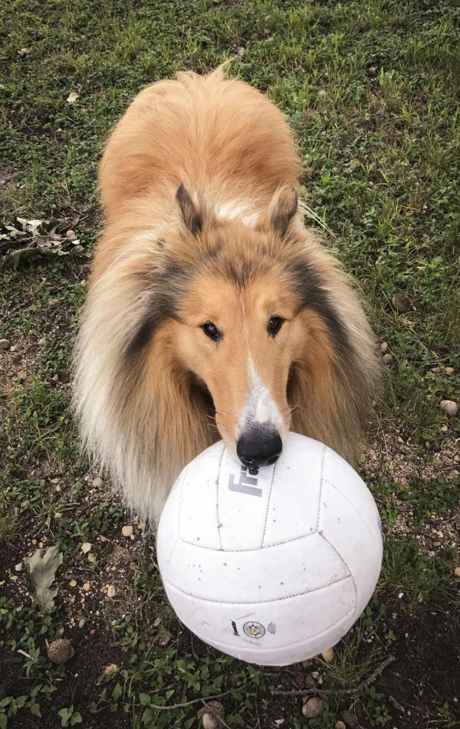 I finally stopped kicking the soccer ball, worried this bushy, beautiful creature was going to become overheated. But Miles remembered me when I returned a few weeks later. We are tight, Miles and I. Two other big dogs rested behind the porch chairs, paying us scant attention.