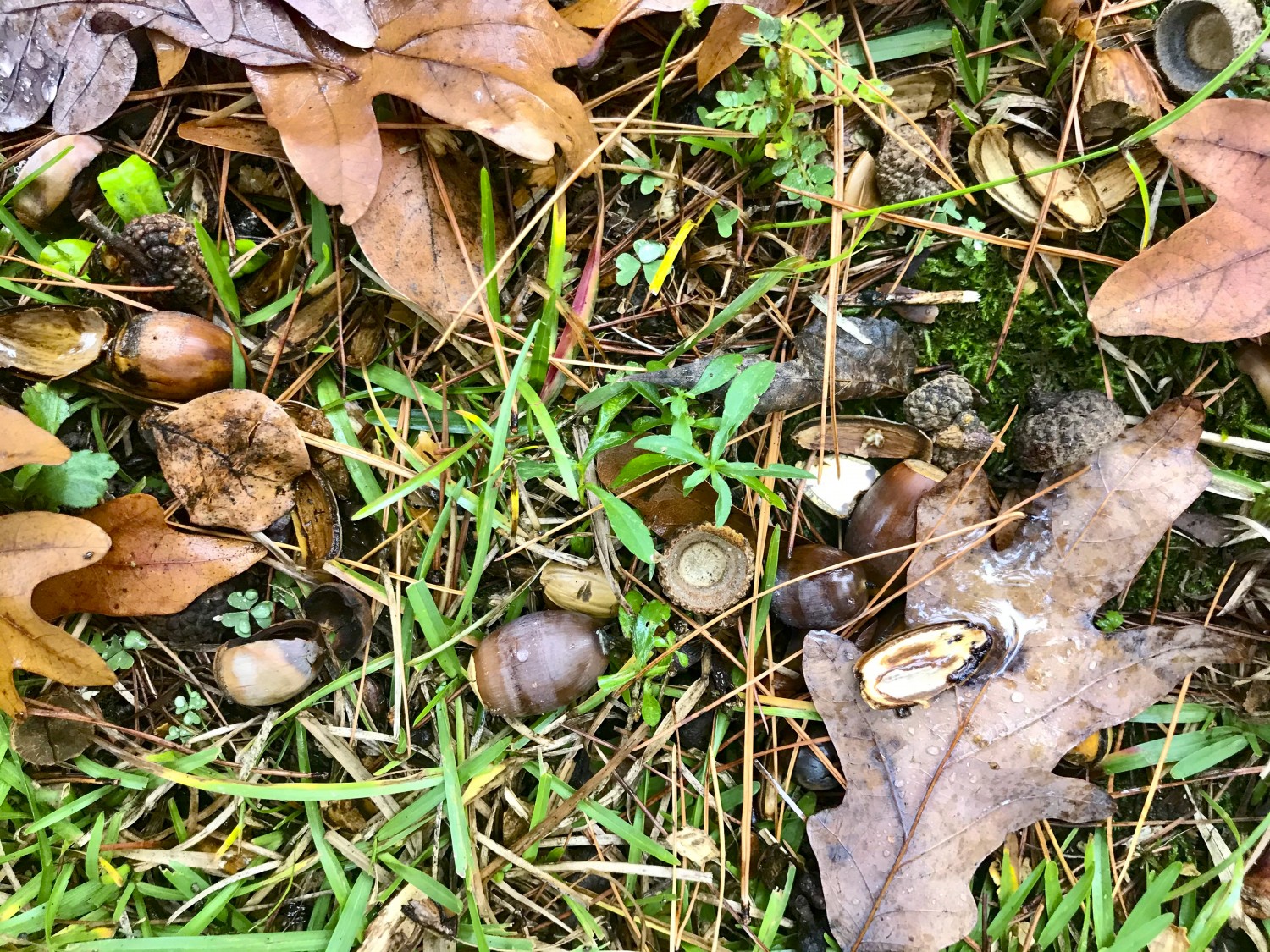 We are having a bumper crop of acorns this autumn, bringing out a full herd of squirrels scampering about, stuffing them in their mouths and then, ahem, squirreling them away. But it would take the entire neighborhood of squirrels in our backyard to get rid of all the acorns. Tater loves to sit on the ottoman as I read outside under the gazebo. Lately, our solitude is disrupted by acorns ricocheting off the gazebo’s roof, the deck and the metal portion of our roof. He glares at me as if I were to blame. We closed and covered the swimming pool about a month ago — guaranteeing that expensive hole in the ground can’t cost me anything until next spring. Acorns and leaves have caused the cover to sag. Once the acorn onslaught has ended, I’ll have to use the skimmer net to fish them out. It is always something with a swimming pool.