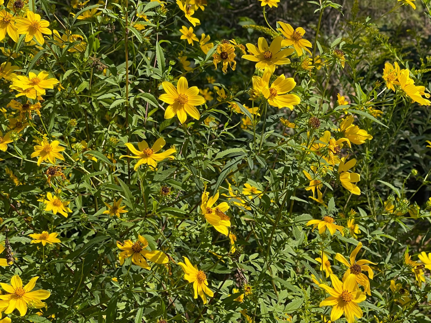 The flowers stretched along the edge of where I bushhogged for more than 100 feet. As I took photos, I noticed dozens of butterflies and small honeybees feasting on their nectar — an unexpected treat for them this autumn. My phone app identified the flowers as a type of coneflower, but I was skeptical and posted a photo on Facebook.