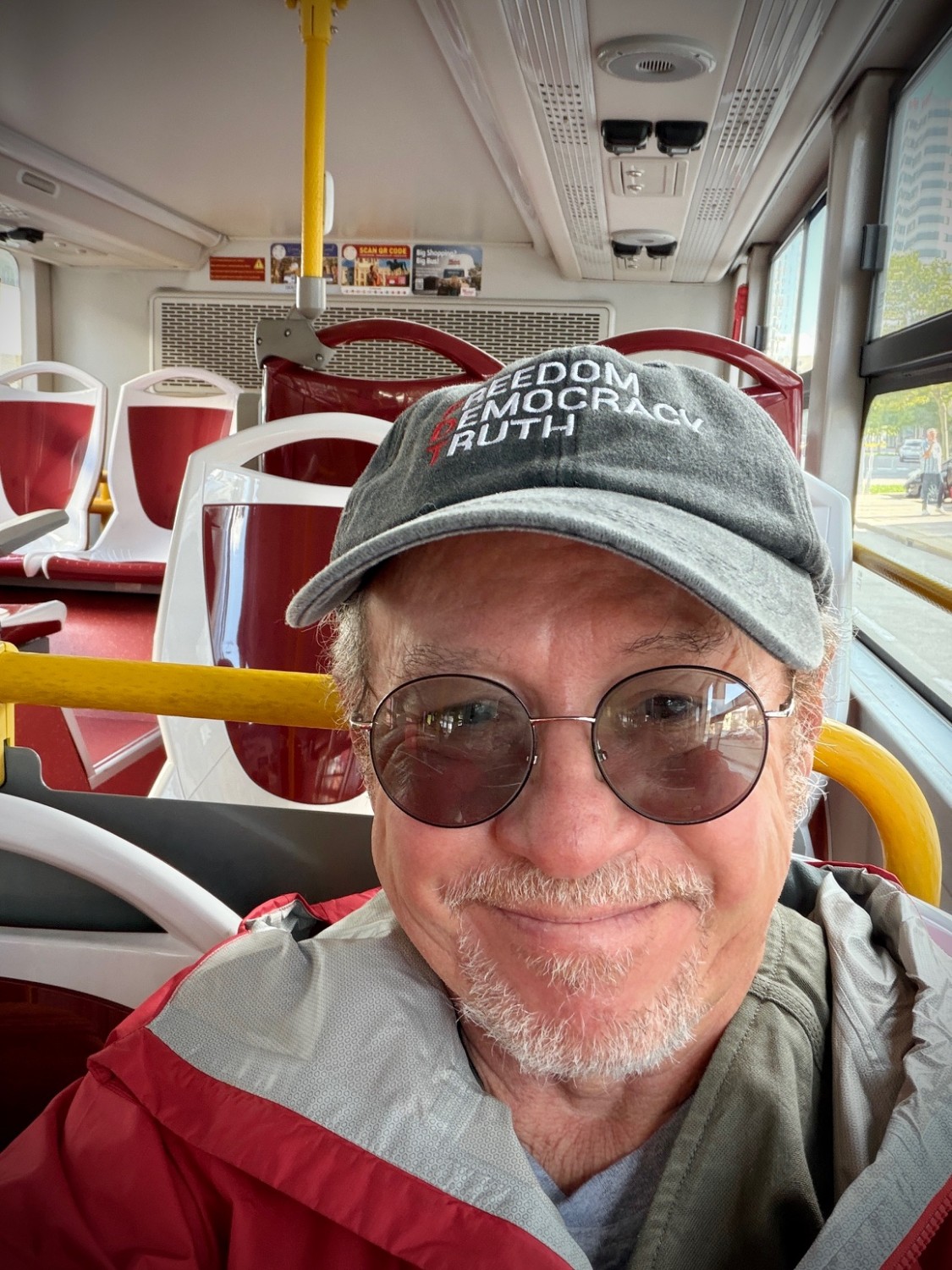 He looked at me and laughed. “Of course!” he replied in flawless English. “Hey, is that the new iPhone 17 you have there?” I was clutching it tightly in my hand. I had purchased it a few days before flying to Munich because of its superior camera. It now serves as my brain — useful when traveling in places where I don’t speak the language. Without it? Things could get tricky. He directed me to a bus idling nearby, instructing me to get off at the first stop to switch to the Blue Line. This first bus was on the Yellow Line — called the Imperial Tour because it emphasizes palaces and castles. I grabbed a pair of cheap earbuds from a box by the driver, climbed aboard, and went to the top level for better photo perspectives. Each seat had an audio guide box with options in German or English. I was soon joined by a Canadian couple from British Columbia. We exchanged pleasantries.