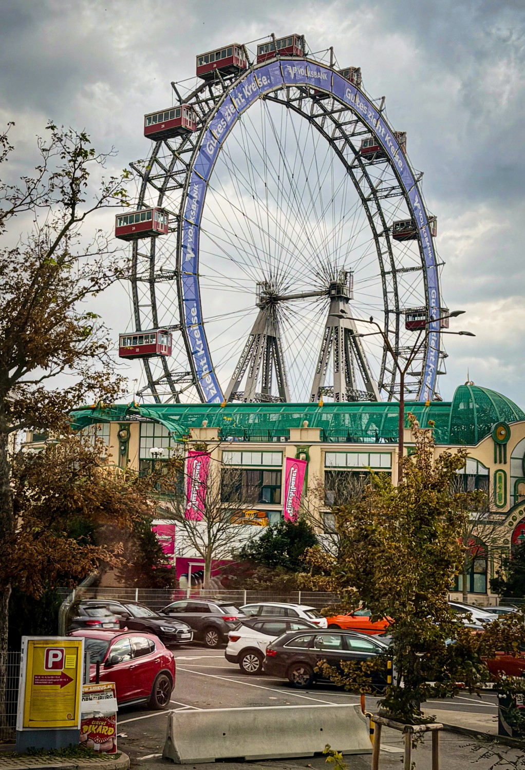 We passed the Wiener Riesenrad, a giant Ferris wheel built in 1897 by English engineer Walter Bassett, who died broke just ten years later. Scheduled for demolition in 1916, the Ferris wheel survived — ironically — because the government was too broke to dismantle it, likely due to World War I. Originally built with 30 gondolas, it was severely damaged in World War II and rebuilt with only 15. I was tempted to take a ride, guessing the view of Vienna would be spectacular. Next time.