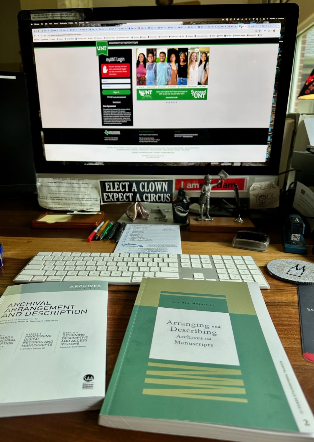 I began this journey in January 2023, enrolling in six hours in the College of Information Science at UNT. My quest was to earn a certificate in archival management, which requires passing 15 credit hours, or five courses. The R.G. LeTourneau Archives, which I work in as part of my job at the Estes Library, received a hefty (for us) grant from the Institute for Museum and Library Services, which is funding both my tuition, a stipend and other costs to help organize and make available the digital content of the archives to anyone with internet access.